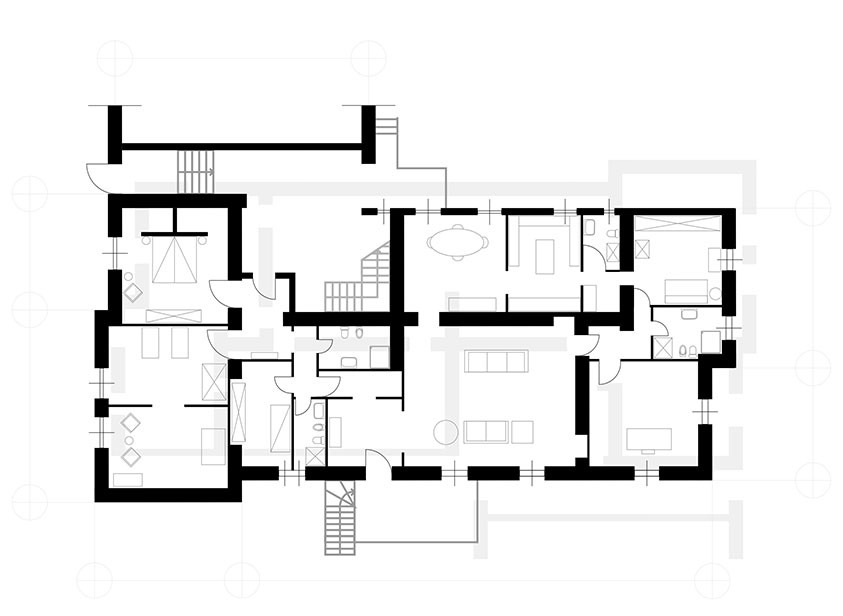 Both floors of this attractive and comfortable house offer abundantly furnished and well-designed rooms. Here are some of them: